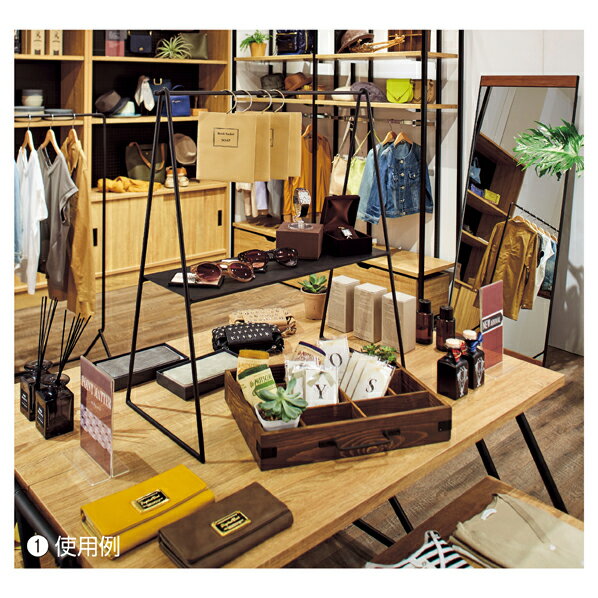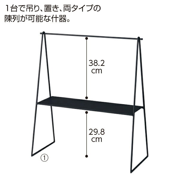 卓上アイアンハンガーラック 棚付き ブラック 【メイチョー】