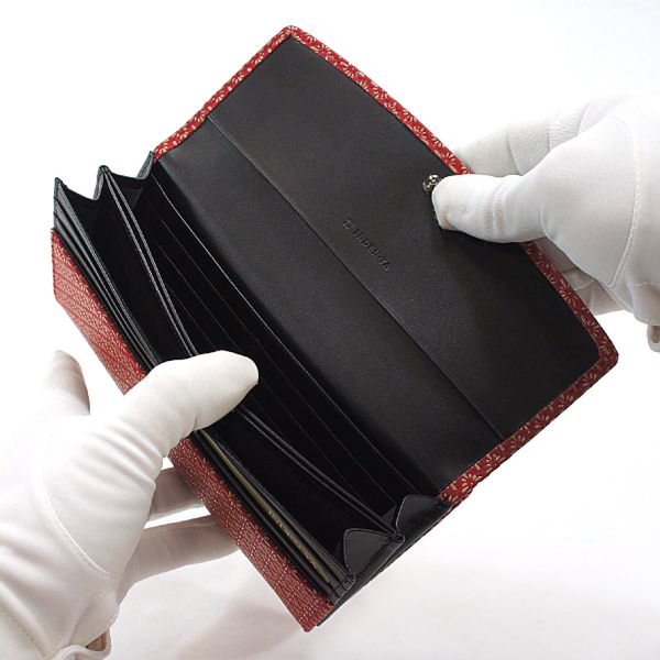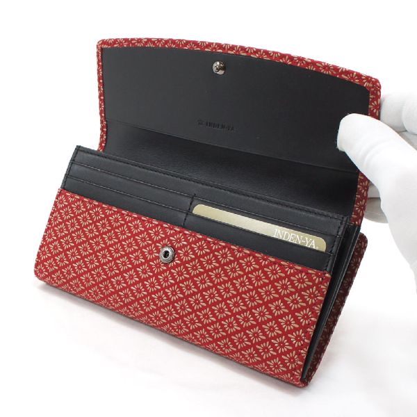 印伝 【甲州印伝・印傳屋】長財布・長サイフ・束入れ【2310】【菱菊】【赤地×白漆】【女性用・レディース】【和柄】【YM02】