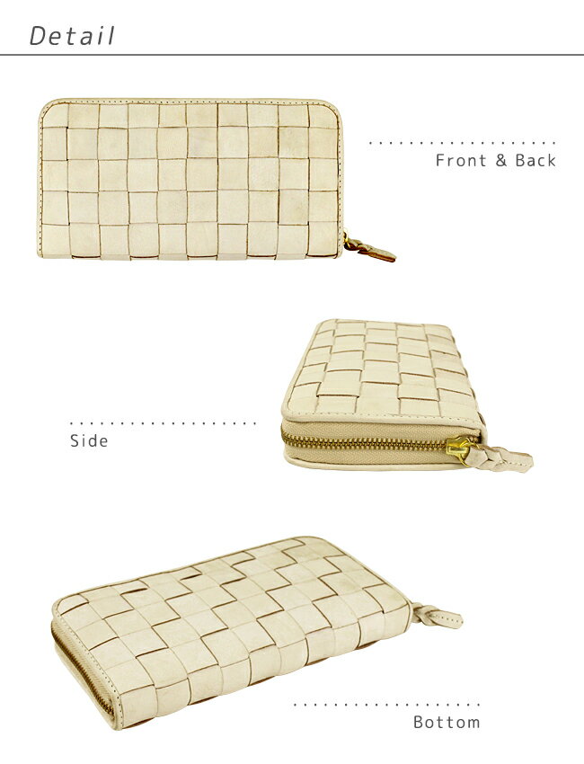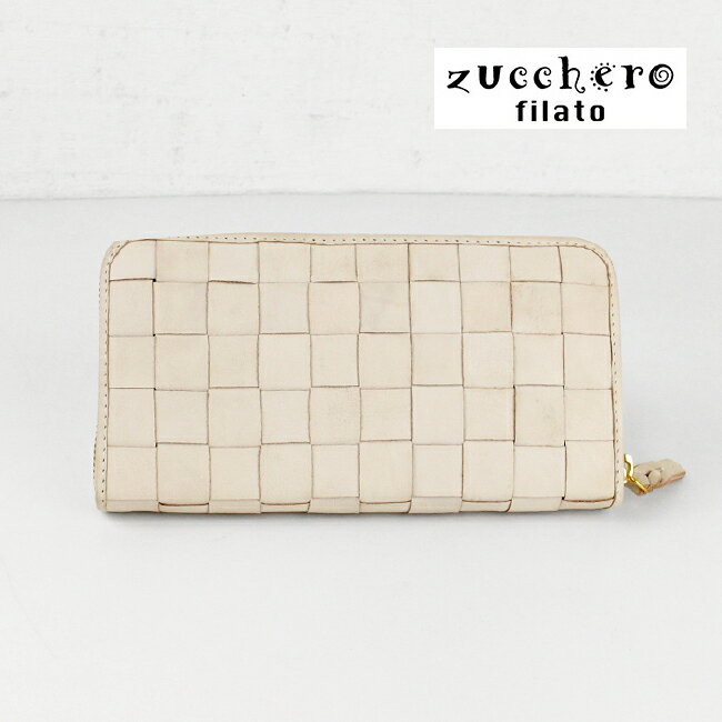 財布 送料無料 ズッケロ 47735W 正規品 正規販売店ホワイト 本革 メッシュ 長財布 ラウンドファスナー牛革 カウレザー zucchero filato 編み 白 革編み込み おしゃれ ナチュラル 大容量