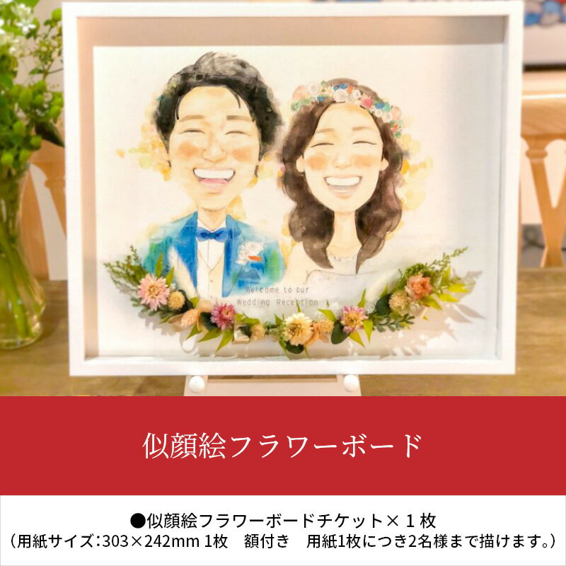 有効期限発行日から365日説明大分市出身の似顔絵作家が描く、優しいタッチのオーダーメイド似顔絵に、プリザーブドフラワーでデコレーションしています。